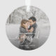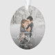 Commémorez votre fiançailles avec ce magnifique ornement de gardien moderne. Le texte blanc dit "Notre premier Noël engagé", avec le mot "engagé" dans un élégant script d'écriture manuscrite avec des fioritures avant et après. Remplacez l'exemple d'image par votre photo préférée, et ajoutez vos noms et l'année. Un filtre dégradé foncé permet de faire apparaître le texte.