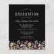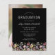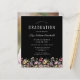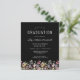 Une belle bordure florale d'aquarelle de fleurs sauvages décore le bord inférieur de cette invitation branchée de fête de graduation boho. Customisez le texte blanc sur un arrière - plan noir, avec le nom du diplômé en écriture manuscrite ; l'année scolaire et de classe en sans serif ; et la date, le lieu et les détails RSVP en police serif. Remplacez facilement l'image de l'échantillon au dos par une photo verticale de votre diplômé.