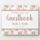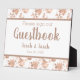 Panneau de tablette personnalisable pour mariage caractéristiques écriture manuscrite police sur arrière - plan gris avec rose or floral encadré et centre blanc zone de texte. Le texte "Livre d'or" peut être customisé pour répondre à tous vos besoins de "jour de", y compris "accueil" "accueil" "cabine photo" "parking" "cocktails" etc.