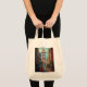 A natural cotton tote bag with a multicolor photo gallery collage design featuring multiple pictures.