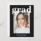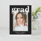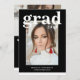 Photo Graduation Party Elégant Modern Script Invitations comprennent votre photo préférée avec le texte blanc simple "Grad (année)" et votre nom et les détails de graduation personnalisée sur le devant. Au verso, ajoutez une image supplémentaire avec les informations sur l'invitation de graduation ci-dessous. Personnalisez en modifiant le texte dans les zones de texte fournies. Créé par ©Evco Studio www.zazzle.com/store/evcostudio