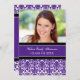 Invitation de la fête de graduation carte photo sur mesure dans un modèle élégant et sophistiqué de couleur violet foncé, noir et blanc moderne damas floraux. Customisez ce grand carte photo en ajoutant l'année de votre diplôme, votre propre photo et les détails de votre fête de graduation.