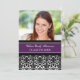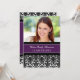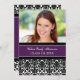 Invitation de la fête de graduation carte photo sur mesure dans un modèle élégant et sophistiqué de couleur violet foncé, noir et blanc moderne damas floraux. Customisez ce grand carte photo en ajoutant l'année de votre diplôme, votre propre photo et les détails de votre fête de graduation.