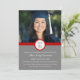 Invitation de la fête de graduation carte photo personnalisé en rouge, gris fusain foncé et blanc design moderne. Customisez ce grand carte photo en ajoutant l'année de votre diplôme, vos propres photos et les détails de votre fête de remise des diplômes.