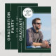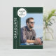 Photo Graduation Party Modern Script Green Les invitations blanches présentent votre photo préférée avec le texte simple "Graduate" et votre nom et les détails personnalisés de graduation. Personnalisez en modifiant le texte dans les zones de texte fournies et en ajoutant votre photo préférée. Personnalisez avec vos informations sur l'invitation de graduation à l'envers. Créé par ©Evco Studio www.zazzle.com/store/evcostudio