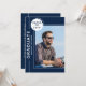 Photo Graduation Party Modern Script Bleu Les invitations blanches présentent votre photo préférée avec le texte simple "Graduate" et votre nom et les détails de graduation personnalisée. Personnalisez en modifiant le texte dans les zones de texte fournies et en ajoutant votre photo préférée. Personnalisez avec vos informations sur l'invitation de graduation à l'envers. Créé par ©Evco Studio www.zazzle.com/store/evcostudio