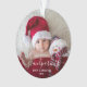 Aidez-les à célébrer leur premier petit-enfant avec ce magnifique ornement moderne de gardiens. Le texte blanc dit "Notre premier Noël en tant que grands-parents", avec le mot "grands-parents" dans un élégant script d'écriture manuscrite avec des fioritures avant et après. Remplacez facilement l'image de l'échantillon par votre photo préférée du nouveau bébé, et ajoutez son nom et l'année. Un filtre dégradé foncé permet de faire apparaître le texte.