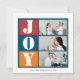 Cette carte de vacances photo est dotée d'un cadre photo couleur vive avec une combinaison de couleurs rouge, bleu marine et orange et la joie d'inscription. Le côté arrière de cette carte présente une bande rouge et bleu marine. Téléchargez vos photos préférées, signez votre nom de famille et vous avez terminé ! Envoyez cette carte postale brillante et spectaculaire à vos proches.