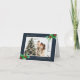 Elégante carte de Noël en bleu avec une aquarelle peinte de houx et de baies. Ajoutez facilement votre photo préférée, changez le texte, ou la couleur arrière - plan de cette carte pliée bleue personnalisée.