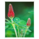 Une paire de fleurs de trèfle cramoisi s'élève d'une forêt verte. L'arrière - plan de vert foncé hors du focus offre un beau contraste avec les fleurs crimson lumineuses.