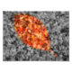 Photographie d'automne de couleur sélective de feuilles de myrtes tombées, avec une forme de feuilles dorées de rouge, orange et jaune vif contre un arrière - plan noir et blanc.