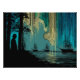 La nuit, des voiliers traditionnels naviguent sur une côte nord sous les aurores boréales (Aurora Borealis). Art génératif inspiré des paysages nord-américains et scandinaves. Minnesota, Michigan, Maine, Nouvelle-Angleterre, Canada, Scandinavie, Suède, Norvège, Finlande.
