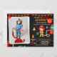 Photo Invitation d'anniversaire du pompier Invitation de fête du camion de pompier. Jolie invitation pour la fête d'anniversaire du jeune pompier avec camion Red Fire, pompier brun garçon et du matériel de lutte contre les incendies. Sonnez l'alarme et éditez simplement ce modèle facile à utiliser dans le menu Personnalisation.