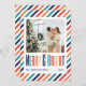 Cette Carte de Noël de vacances comprend un texte de typographie rétro "joyeux & lumineux", les noms de la famille, année, et la photo sur un arrière - plan rétro rayures.