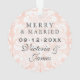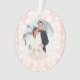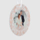 Personnalisez cet élégant mariage marié vêtu d'un vêtement de vacances avec votre portrait favori du jour du mariage (conseil : photo de rogner à la forme carré avant de télécharger). Un joli motif vintage damassé en lin rose roux encadre la photo et fournit un arrière - plan décoratif au texte monogramme "Joyeux et Marié" de la coutume élégante sur le dos.