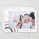 Carte de vacances minimale et joyeuse avec menthe rose et arc-en-ciel marron et simple texte de Joyeux avec nom et photo.