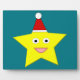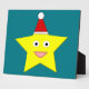 Cette magnifique plaque comporte une jolie petite étoile à cinq pointes jaune. L'étoile a une grande paire d'yeux avec des élèves noirs brillants et un sourire heureux. L'étoile porte un casquette festif rouge avec une bombe blanche au dessus. Ce design est parfait pour répandre la joie de Noël.