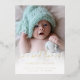 Photo Love Thanks Faire-part de naissance Luxury. Combinez votre faire-part de naissance et merci pour les cadeaux et les cartes afin que vous puissiez envoyer sur le modèle unique. Avec un vrai papier d'aluminium de luxe en or, or rose ou argent pour votre nouveau nom d'arrivée, les statistiques de naissance et le set typographie Love and Thanks. Remplacez l'échantillon de photo par votre propre favori de votre nouveau bébé. Ajoutez également un message au dos.