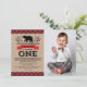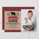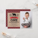 Célébrez le premier anniversaire de votre garçon avec cette invitation thématique baby shower bûcheron. Il présente des lettres audacieuses, un ours au milieu du feuillage avec un motif de buffle à l'arrière. Ajoutez la photo de votre bébé pour le rendre spécial. Il fait un thème de fête adorable pour vos garçons 1er anniversaire. Conçu pour vous par Blackberry Boulevard.