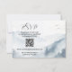 Carte RSVP avec une aquarelle représentant un versant de montagne avec des pins pendant une journée d'hiver brumeuse. Un modèle de code QR peut être facilement ajusté pour se connecter à votre propre site. Au dos se trouve votre photo personnalisée.