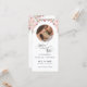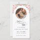 Dégustez vos invités avec cette photo élégante Enregistrer le signet de date. Conception avec une aquarelle peinte à la main dans les tons rose vif, or rose et bordeaux, encadrant votre photo dans un cadre de superposition circulaire attrayant. Jolie phrase "Save the Date" dans la calligraphie manuscrite moderne. En haut de l'espace central clair en coque, vous souhaitez avoir la possibilité de frapper un tout, et embellir la signet avec un ruban décoratif. Ajoutez vos noms, date, lieu et toute autre information supplémentaire que vous souhaitez. Retour avec le coin détails floraux encastré élégant logo "nouvelle date" avec la phrase "enregistrer la date" dans la calligraphie moderne, votre date et les noms de mariée et de mariée.