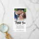 Carte photo personnalisé avec votre propre photo mariage. Merci écrit dans un magnifique script de pinceau noir gras avec un look fantaisiste. Personnalisez avec une note à vos invités mariages, et avec vos noms. Le bord entre photo mariage et texte est adouci par un dégradé blanc.