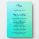 Jolie carte personnalisée Mars Birthstone Aquamarine thème Table top Plaque avec chevalet cadeau. Poem décrit les propriétés métaphysiques du cristal Aquamarine.