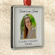 Ce joli ornement sera un souvenir pour les années à venir. Le design comporte les mots "Forever in our Hearts" en haut. Votre photo apparaît à l'intérieur d'une arche dorée au centre sur un fond blanc. Le nom et les dates de votre être cher apparaissent ci-dessous. Copyright Sympathy Merci par Kathy Henis