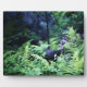 Une photo d'une dinde marchant à travers des fougères dans un bois.
