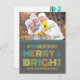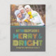 Cartes postales photo personnalisées de Noël jolies et lumineuses en jaune contemporain, gris, vert, bleu turquoise aqua turquoise, et orange avec texte amusant et zigzags chevron rayures motif, élégant et simple avec texte élégant. Souhaitez à votre famille et à vos amis le meilleur de cette saison de vacances avec cette carte postale amusante.