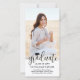 Partagez la joie d'un baccalauréat ou d'un collège et de la famille et des amis invitations à célébrer avec une combinaison élégante d'annonces photo et d'invitations de fête. L'image et le libellé de ce modèle sont simples à personnaliser et les couleurs sont faciles à changer à l'aide de l'outil de design Zazzle. Le design moderne en noir et blanc comprend un casquette en carton de mortier, une calligraphie en écriture tendance, une typographie classique élégante et une photo de votre choix, comme une image ou une image de haut niveau de la cérémonie de début. Cette chic carte de graduation verticale téléchargeable est une façon élégante d'annoncer une fête spéciale. Félicitations au diplômé !