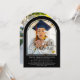 Photo Modern Arch Script Graduation Faire-part comprend deux de vos photos préférées de votre diplômé avec le texte "Graduate" dans élégant script de calligraphie moderne. Simple, élégant et classe. Créé par ©2025 Evco Studio www.zazzle.com/store/evcostudio
