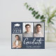Réception moderne et économique bleu foncé qui présente un collage photo 3, "Graduate" en grande typographie blanche et l'année de classe de la grad, nom et l'école ou l'université en simple typographie blanche. Ajoutez les détails de votre fête à l'arrière.