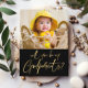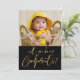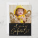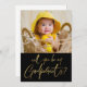 Carte de proposition de photo Godparents moderne. Le design comprend une photo du bébé, script de typographie or sur l'arrière - plan noir "Will you be my godparents" sur le devant. Personnalisez davantage avec votre message et votre nom au dos.