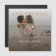 Minimaliste, moderne enregistrer l'invitation de la date avec la couche de photo dégradé, les anneaux interverrouillés et l'élégant croquis des vagues et des éléments entièrement personnalisables / texte/ couleurs