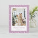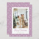 Elégante photo lilas Joyeuse carte de Noël avec des étoiles et un accueil de vacances dans une belle police de script festif. Personnalisez facilement cette carte de vacances photo étoilée avec votre photo et votre nom de famille.