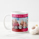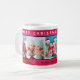 Cette tasse de vacances modèle photo facile d'utilisation a 5 spots photo pour vous d'ajouter vos propres photos de famille. Le design bordant le foulard rouge offre l'espace de "Joyeux Noël". De plus, customisez cette tasse pour n'importe qui ou partez comme pour grand-mère. Les noms de tous sur les photos sur le foulard de fond peuvent être personnalisés pour un look moderne unique.