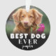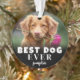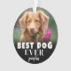 Ornement photo personnalisé "Meilleur chien du monde". Célébrez votre chien adoré cette saison des fêtes avec un ornement photo personnalisé conçu pour capturer les souvenirs chéris ensemble. L'avant présente un espace pour une photo de votre chien, ainsi qu'un texte personnalisable qui dit "Meilleur chien du monde" et le nom de votre chiot en texte blanc sur un fond ombré noir élégant. Le dos présente un motif d'empreinte de patte en noir, avec une découpe en forme de cœur au centre, ajoutant une touche douce et personnelle. La couleur de la police et l'empreinte de patte peuvent être personnalisées pour s'adapter à votre style. Ce souvenir est parfait pour les amoureux des chiens, ce qui en fait un cadeau attentionné pour les fêtes, les anniversaires ou comme mémorial spécial pour votre compagnon à fourrure. C'est une belle