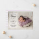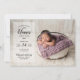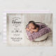 Cartes photos bébé imprimés sur mesure et abordables. Ce design branché présente une typographie moderne personnalisée avec le nom du bébé et les statistiques de naissance, ainsi qu'une photo à fond saigné. Sur le côté arrière, vous trouverez un imprimé couleur pastel violet et blanc, ou utilisez l'espace pour ajouter des photos et du texte si nécessaire. Utilisez les outils de conception pour customiser des polices de texte et des couleurs pour créer un faire-part de naissance unique pour bébé pour votre nouveau-né.