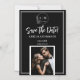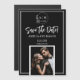 Photo Monogram Save the Date Magnet. Announce your upcoming wedding with this sophisticated 'Save the Date' magnetic card. Featuring a classic black and white aesthetic, and monogram, this design elegantly frames your favorite engagement photo. The bold 'Save the Date!' calligraphy script paired with minimalist typography for names and date creates a timeless feel. It’s the perfect way to ensure your guests remember your special day with this chic and practical keepsake with your favorite engagement photo. This magnetic card is a stylish and memorable way to keep your wedding date top of mind for all your loved ones.