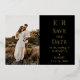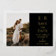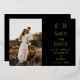 Introduisez l'essence de la sophistication avec notre exquise 'Monogramme noir et or Photo Enregistrer la Carte Date'. Réalisée sur de vraies cartes d'invitation en feuille d'or de Zazzle, cette carte présente une mise en page captivante avec une photo à gauche et un texte élégamment scénarisé à droite, le tout sur un fond noir frappant orné d'une typographie dorée chatoyante. L'envers est revêtu d'une finition noire épurée, complétant l'allure de ce design opulent.