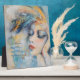 Add a touch of magic and wisdom to your space with this 8x10 tabletop plaque of a mystical woman, adorned with stunning blue and orange feathers, reminding you to trust your inner voice with the message: "I envision my future and let my wisdom guide me." It’s the perfect, beautiful reminder for any room where you want to feel empowered and inspired. Perfect for a home, counseling or wellness office.