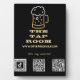 Restez connecté avec les clients du bar/brasserie en utilisant ce panneau de table qui comporte une tasse de bière néon avec du texte personnalisable et des codes qr sur les médias sociaux sur arrière - plan noir