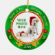 Photo adorable et ornements personnalisés d'arbre de Noël de chien avec votre PHOTO, 3 modèles des TEXTES. Décoré des pattes mignonnes de chien, ornements, coeurs. Introduisez dedans le nom de votre chien et le message de Noël. Cliquez sur le "changement" pour ajouter votre photo ou suppression de chiens pour voir un grand coeur rouge. APPELEZ le concepteur Linda : 239-949-9090 pour l'AIDE ou les CHANGEMENTS de conception. Je peux changer les couleurs, produit et occasion, avec ou sans le texte et les modèles photo. Le dos a un cercle des pattes de chien colorées par or et d'un grand coeur rouge (le nom du chien apparaîtra automatiquement sur le dos quand vous le dactylographiez dans la zone de texte).