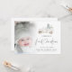 Photo moderne superposition Script Baby First Christmas Camion. Remplacez simplement l'exemple de photo par le vôtre. Le premier Noël est dans un style moderne et écrit à la main et personnalise facilement le reste du texte. Une aquarelle douce couleur pastel illustration de camion avec arbre et bonhomme de neige est placée au-dessus du texte.