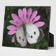 Cette magnifique plaque est ornée d'une photo d'un Grand Papillon Blanc, aussi connu sous le nom de Papillon Blanc Chou, assis sur une belle fleur de marguerite africaine rose violet. Le papillon a ses ailes ouvertes, révélant ses belles marques.
