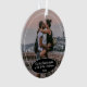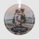 Joli décor pour l'arbre de Noël de décembre avec la possibilité de personnaliser ou de customiser avec le nom de votre famille dans une police élégante, une photo personnelle et l'année de votre choix. Avec un joli motif saisonnier d'aiguilles de pin vertes et de baies de genévrier bleues en toile de fond. Un souvenir unique qui pourra orner votre arbre pendant des années !