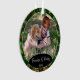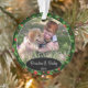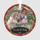 Joli décor de Noël pour l'arbre de décembre avec espace pour personnaliser ou customiser avec le nom de votre famille dans une police élégante, une photo personnelle et l'année de votre choix. Avec un joli fond saisonnier à motif de feuilles de houx vertes et de baies rouges comme décoration. Un souvenir unique que vos petits-enfants, les membres de votre famille ou vos amis adoreront !