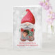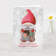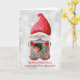 Une belle carte de Noël avec une photo et un gnome aquarelle avec un casquette rouge. A l'intérieur de la carte se trouve un message de Noël