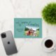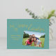 Carte de Pâques joyeuse avec un mignon petit lapin représentant la lettre O dans le texte de Pâques Hoppy, sur un arrière - plan bleu marine turquoise. Avec de la place pour customiser ou personnaliser avec une photo de votre choix, votre propre texte, nom de famille ou nom individuel. Le dos de la carte est décoré d'un petit motif pois de couleur assortie.